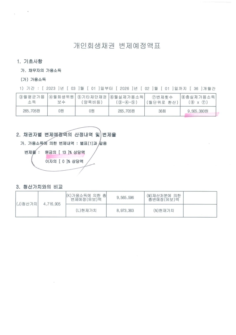 변 제 율 : 13 %