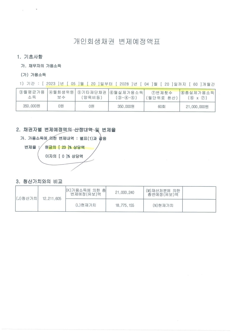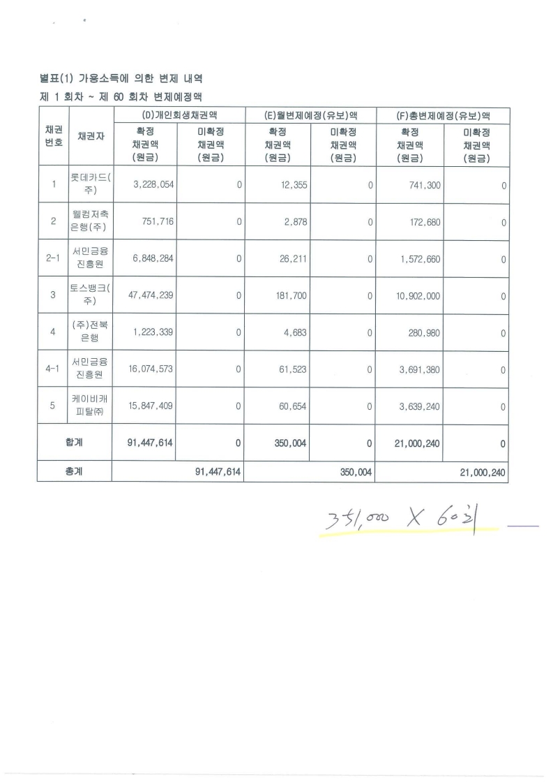 월 변제금 : 350,000 원