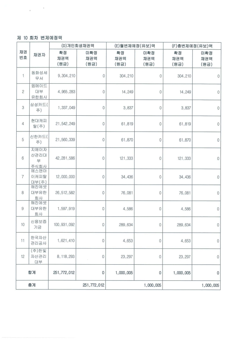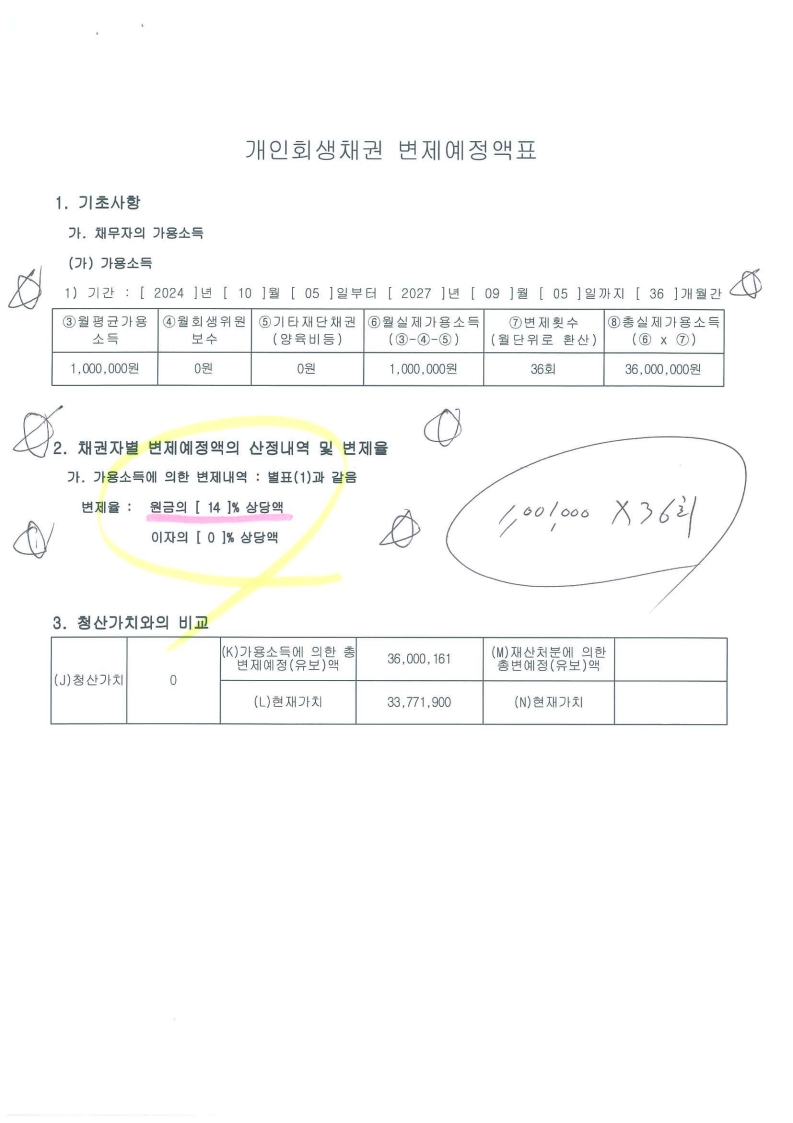 월 변제금 : 1,000,000 원