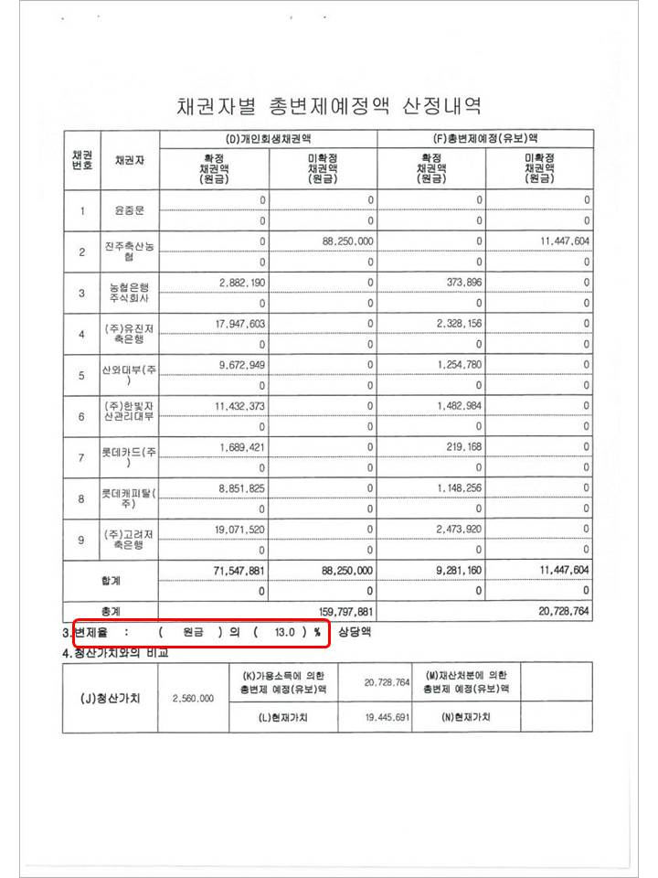 변 제 율 : 13 %