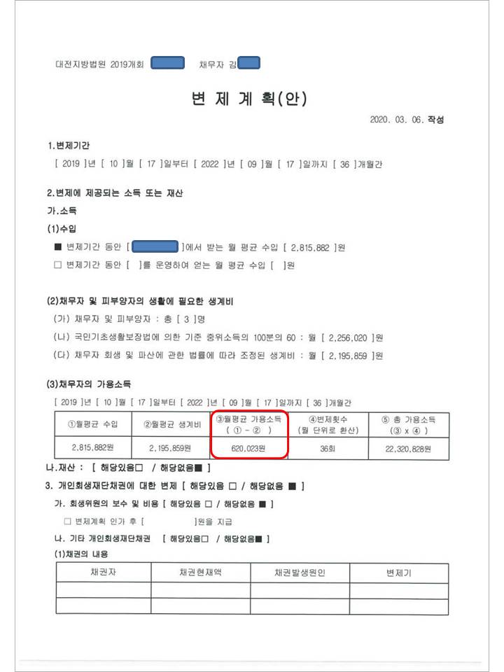 월 변제금 : 620,023 원