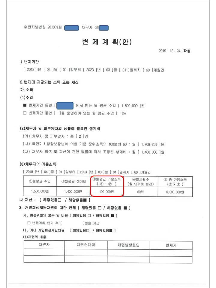 월 변제금 : 100,000 원