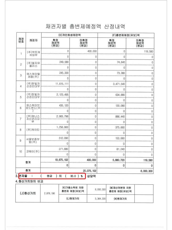 변 제 율 : 30 %