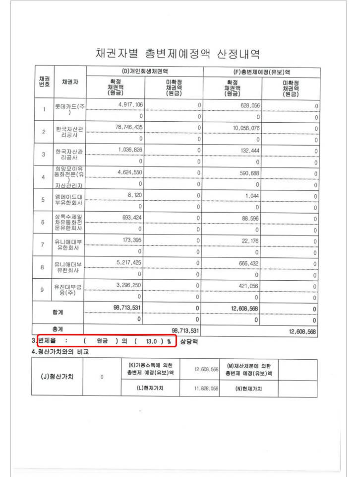 변 제 율 : 13 %