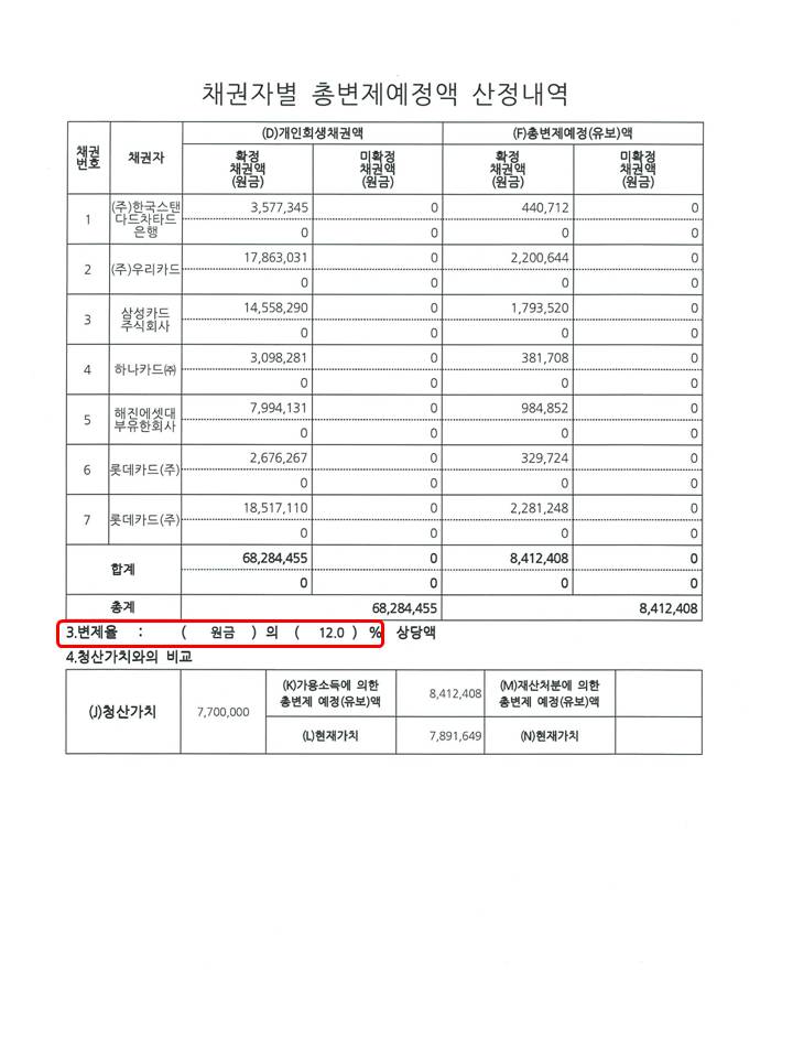 변 제 율 : 12 %